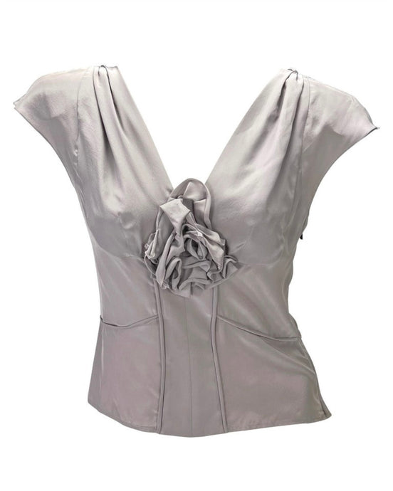 S/S 2003 Yves Saint Laurent by Tom Ford Silk Floral Appliqué Blouse