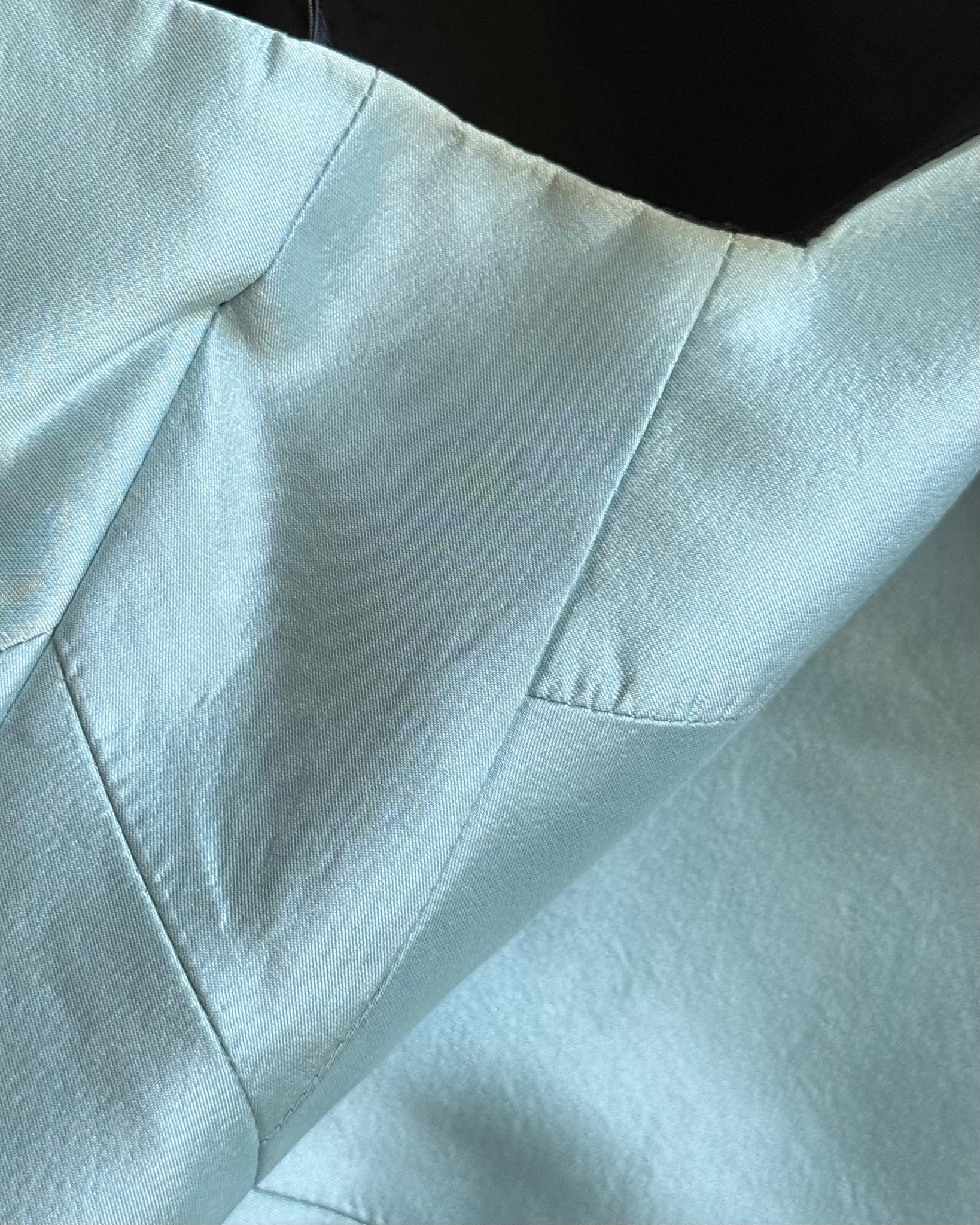 Condition: yellow underarm staining near armpit. Stitching has come loose on back slit. Some small marks.