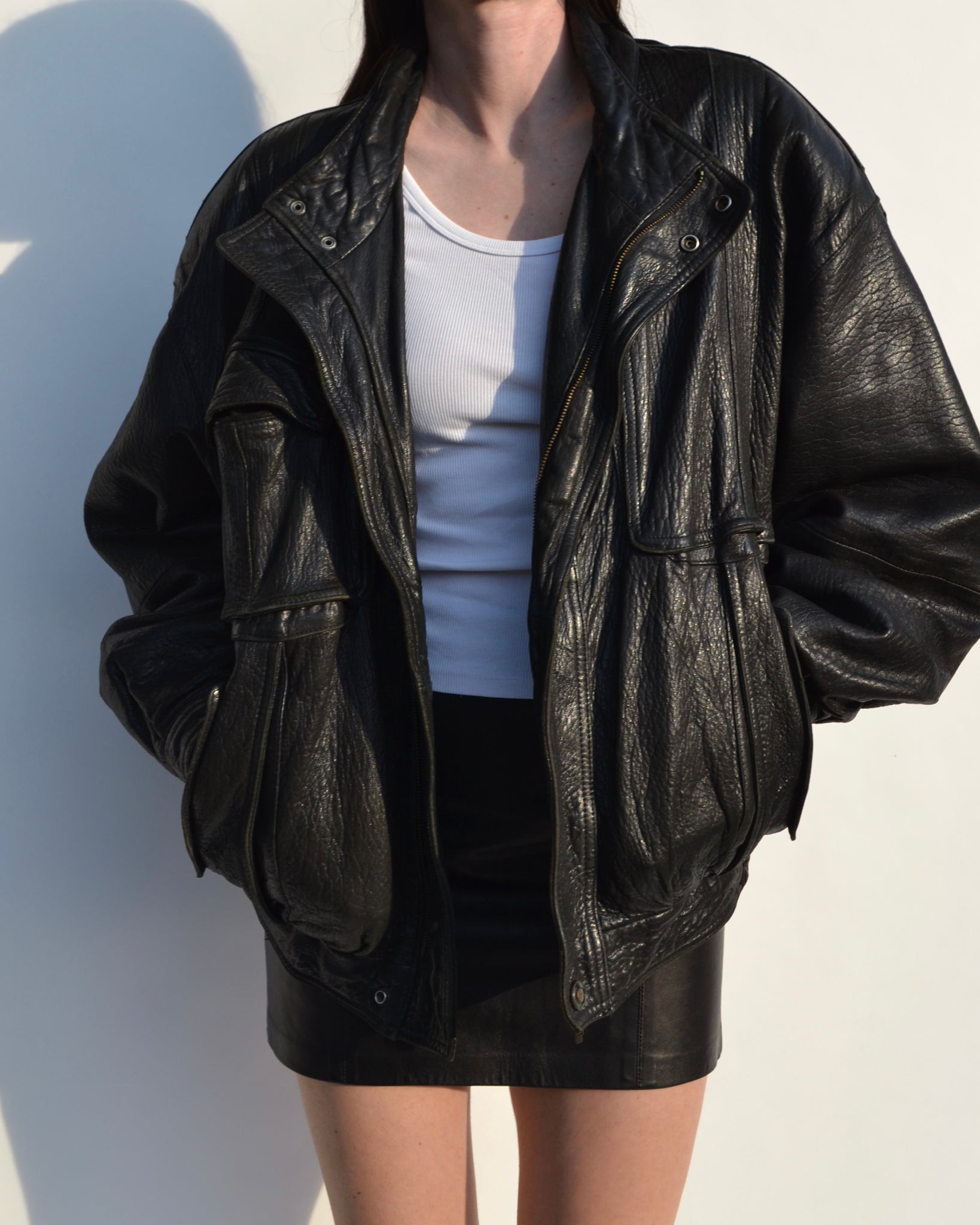 Composition: genuine leather, under body lining is 80% wool, 20% synthetic, upper body/sleeve lining is 100% acetate satin