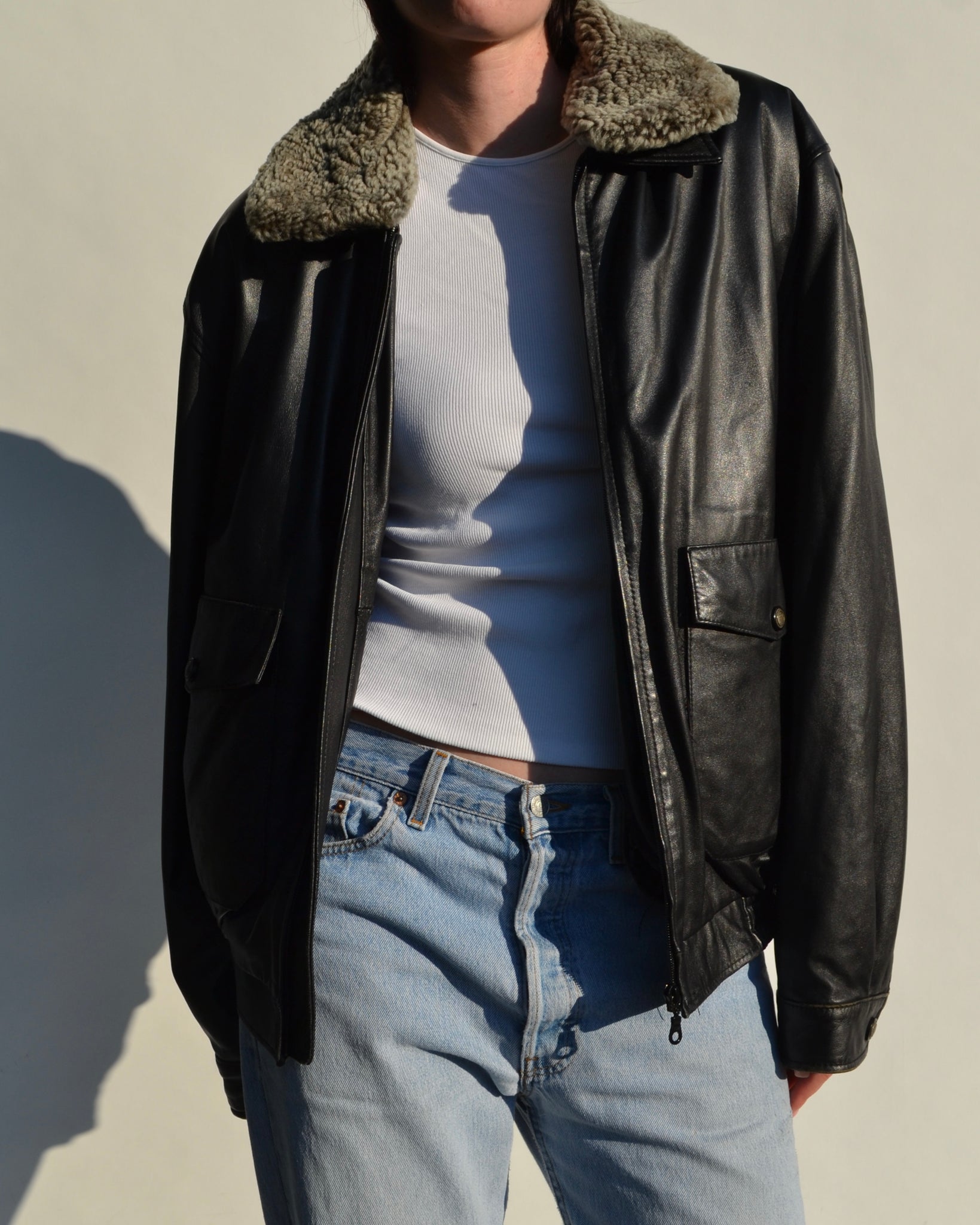 - Black Danier Leather bomber jacket